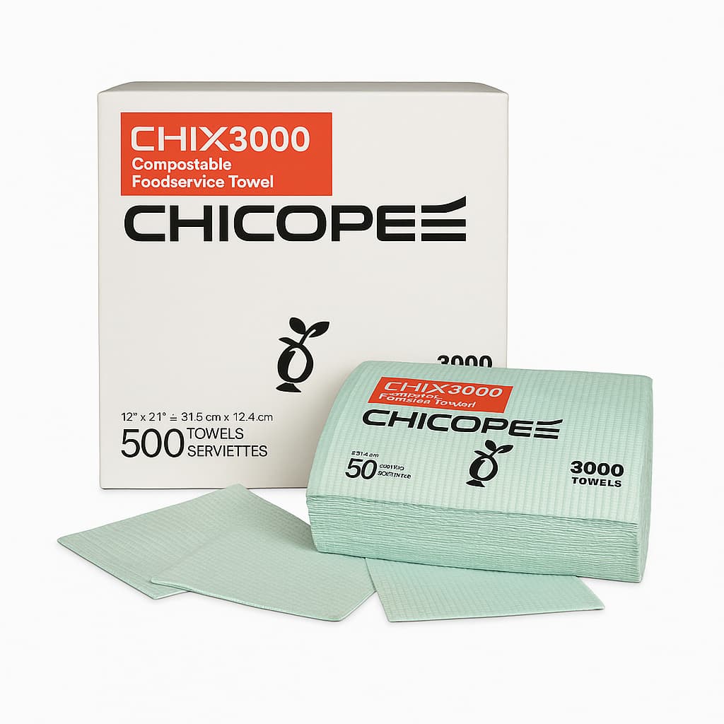 Upgrade your foodservice operation with CHIX® 3000 Compostable Towels by CHICOPEE®—the sustainable solution for high-performance cleaning. Each towel is crafted from compostable materials, making it an eco-conscious choice without compromising durability or absorbency.